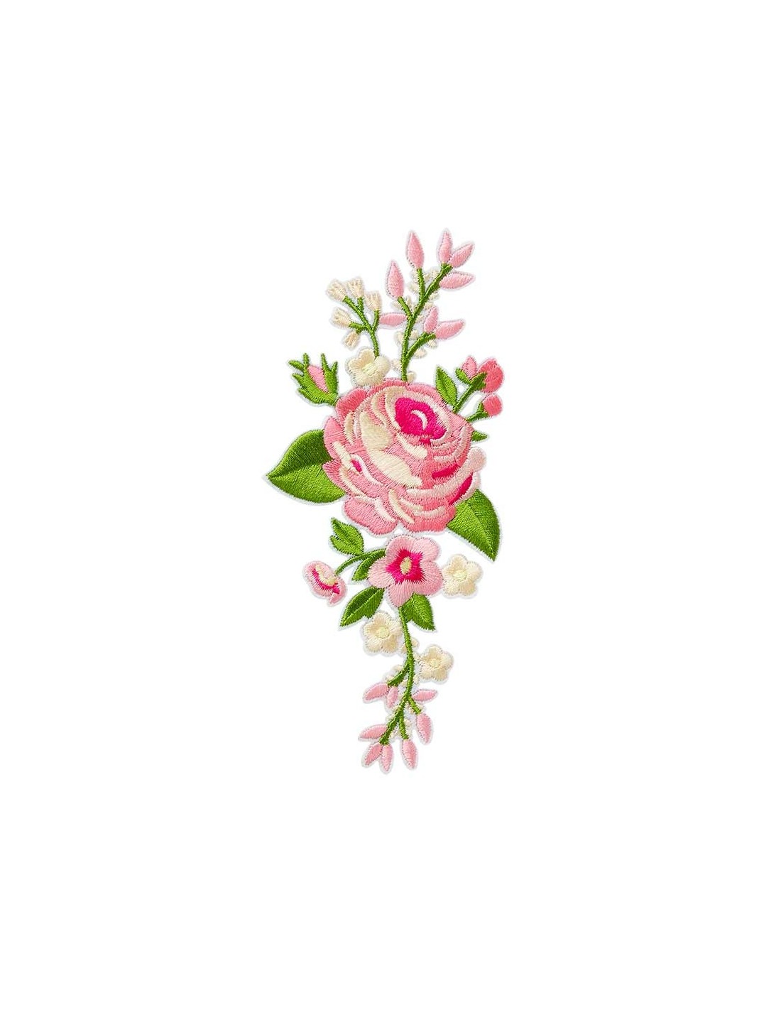 Geef je kleding een speciaal tintje met deze betoverende strijkapplicatie! De elegante bloemenranken in roze tonen een prachtige roos omlijst door een delicate groene kleur. Ideaal om kleding, tassen of accessoires stijlvol te accentueren. Gewoon erop strijken en geef je look net dat beetje extra!