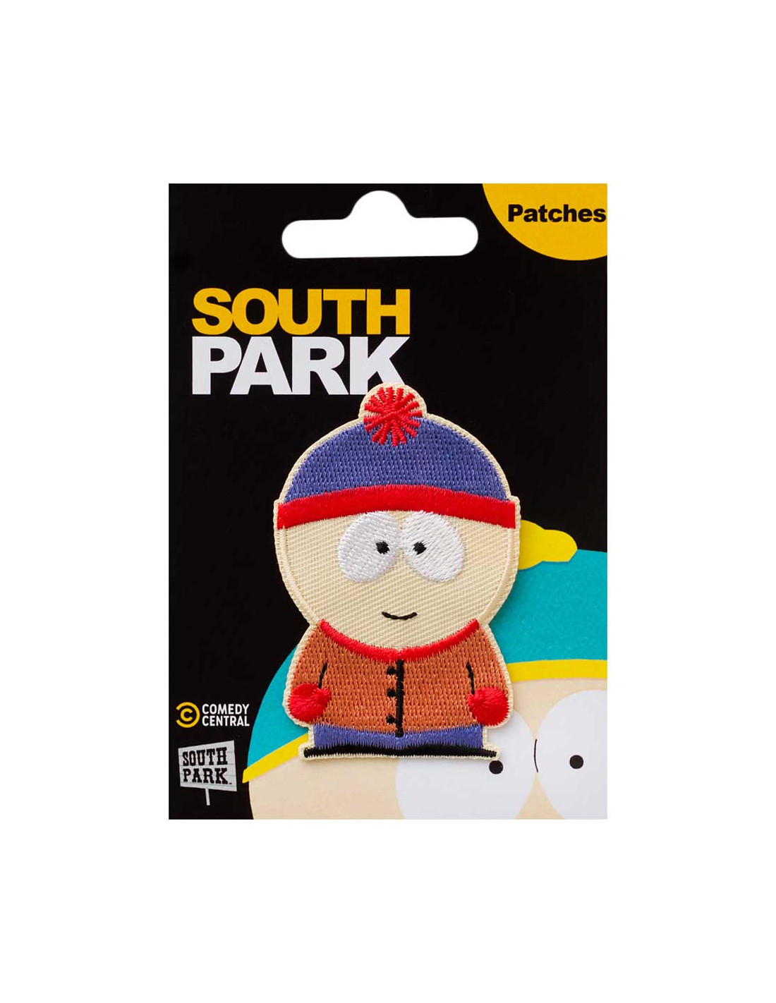 Deze charmante strijkapplicatie toont Stan, perfect voor alle jonge en oude fans van de Southpark-vrienden! Met afmetingen van ongeveer 6,8 x 4,5 cm is hij ideaal voor het versieren van kleding, tassen of accessoires.